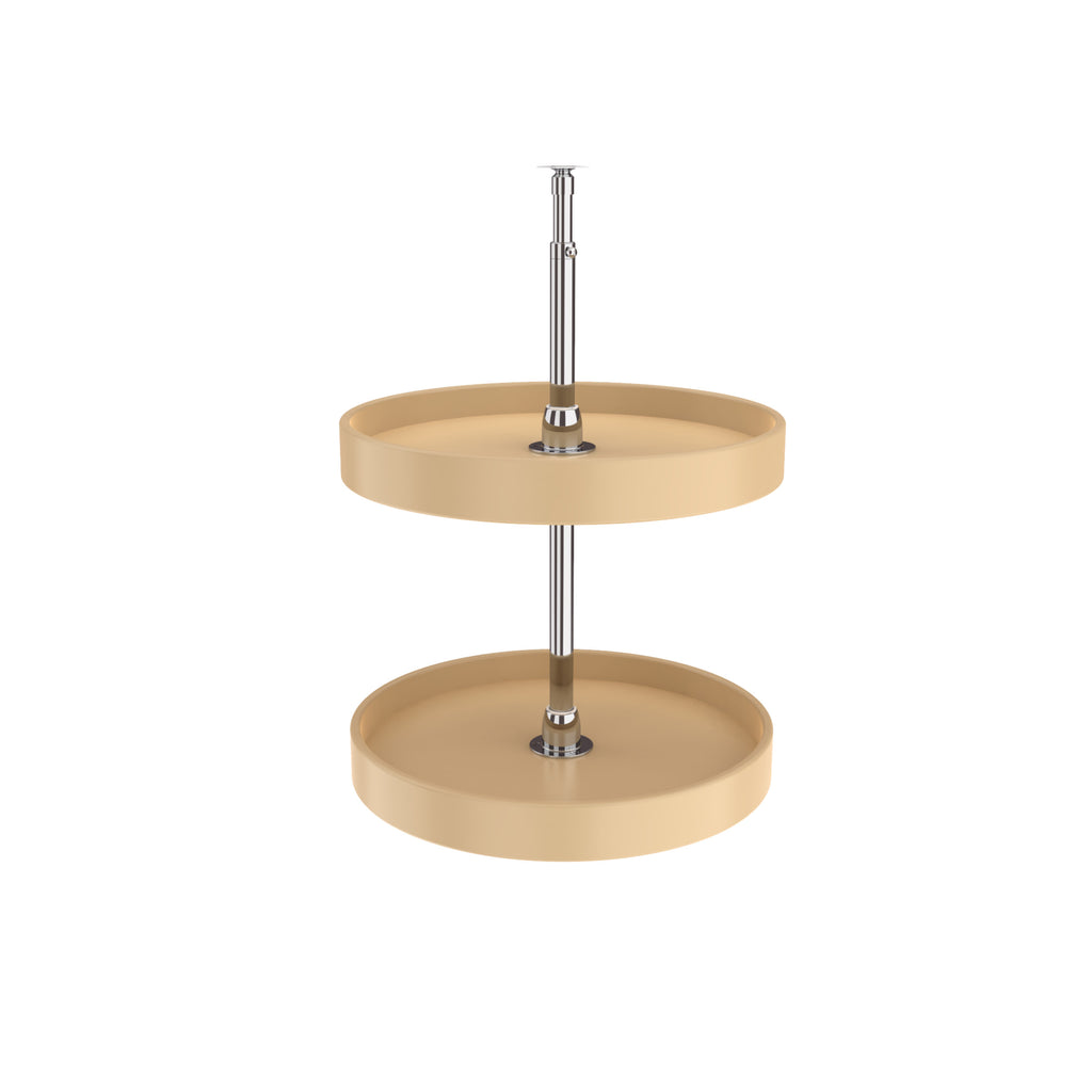 If you are looking for the best polymer susan for your wall cabinet, you are in the right place. Revered as the best in the industry, the Rev-A-Shelf® Polymer full-circle wall susans with single, double, and three shelf options are available in 16", 18", and 20" diameters. They come with a durable chrome post and adjustable hubs in your choice of bottom mount or telescoping options. The smooth polystyrene shelves turn independently of one another.. Included: (2) Shelf Almond Polymer Full-Circle set with telescoping post