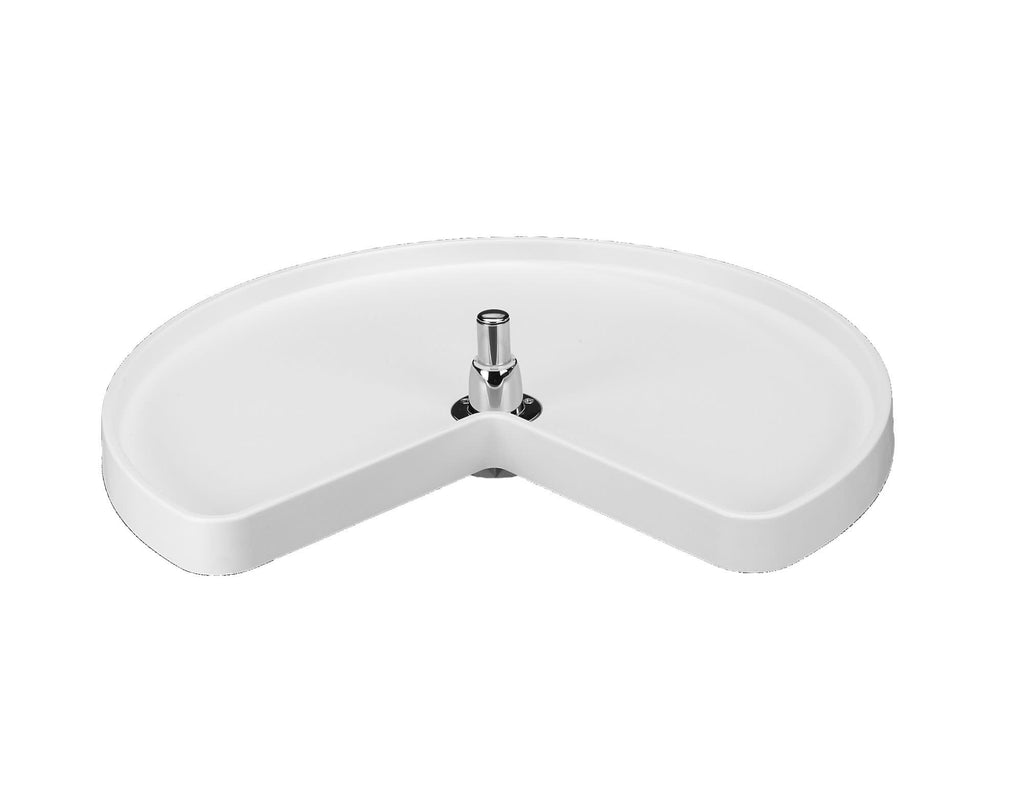 Are your kidney corner base cabinets hard to access? Get the accessibility you want with the kidney-shaped RAS Polymer lazy susan from Rev-A-Shelf®! The single and double 24", 28", and 32" diameters options are available in bottom mount and telescoping hardware options that feature luxurious chrome hubs, an independent rotating post system, and smooth polystyrene shelves in your choice of finishes. Open your cabinet door, and with just a spin, you have complete access to everything stored within.. Included: (1) White Kidney-Shaped Polymer shelf with bottom mount hardware