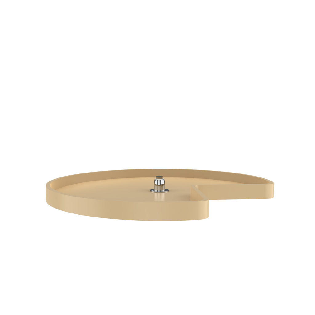 Are your kidney corner base cabinets hard to access? Get the accessibility you want with the kidney-shaped RAS Polymer lazy susan from Rev-A-Shelf®! The single and double 24", 28", and 32" diameters options are available in bottom mount and telescoping hardware options that feature luxurious chrome hubs, an independent rotating post system, and smooth polystyrene shelves in your choice of finishes. Open your cabinet door, and with just a spin, you have complete access to everything stored within.. Included: (1) Almond Kidney-Shaped Polymer shelf with bottom mount hardware