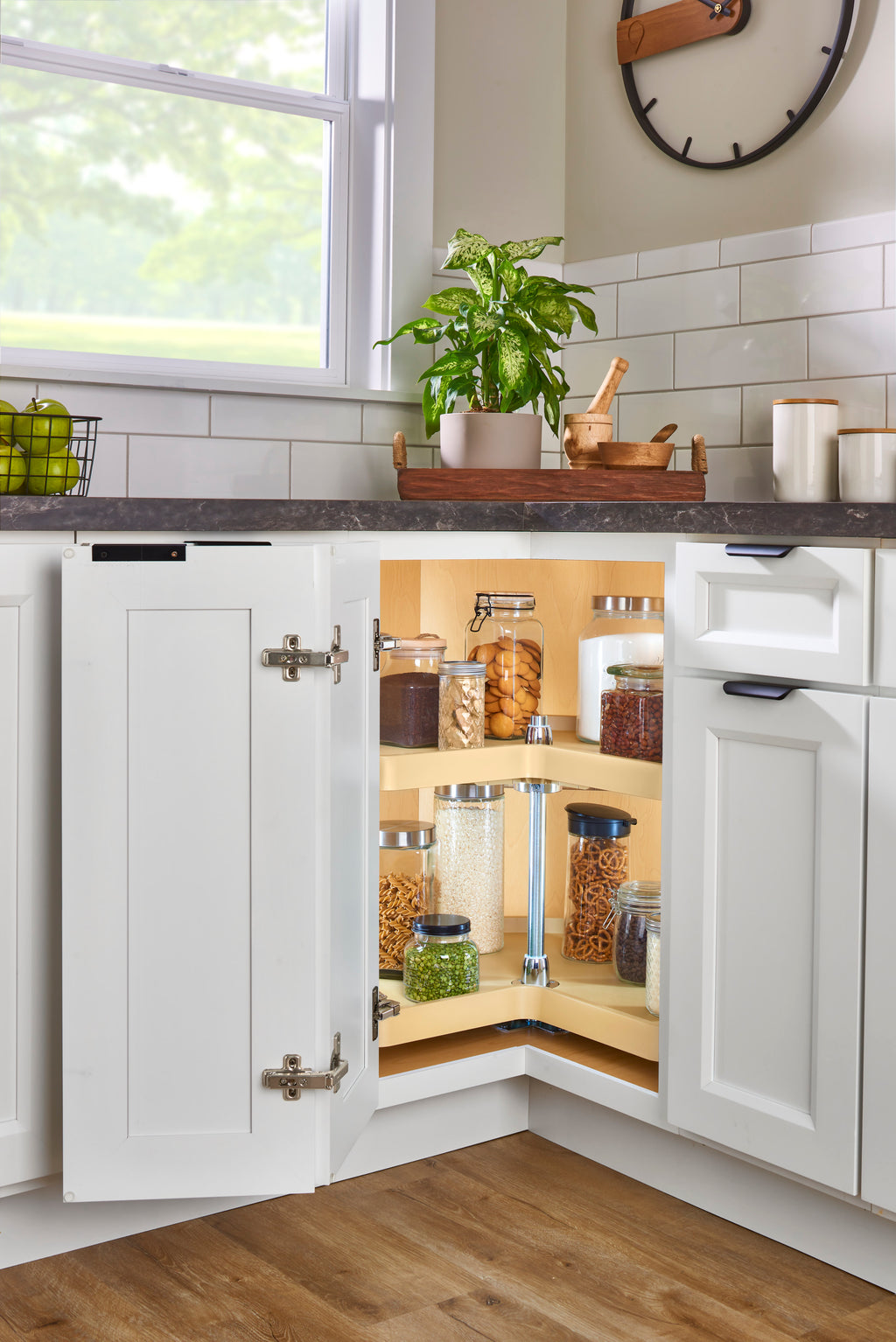 Are your kidney corner wall cabinets making you crazy? Contain the chaos with the kidney-shaped Lazy Susan from Rev-A-Shelf®! This single tray is perfect if you are replacing a damaged or wornout shelf on your existing Rev-A-Shelf® Polymer 6471 or 6472 Series lazy susans. Available in an 18", 24", 28" and 32" diameters with inlcuded luxurious chrome hub metal cast hardware. Post or mounting hardware is not included and is sold seperatley.. Included: (1) Almond Kidney-Shaped Polymer shelf