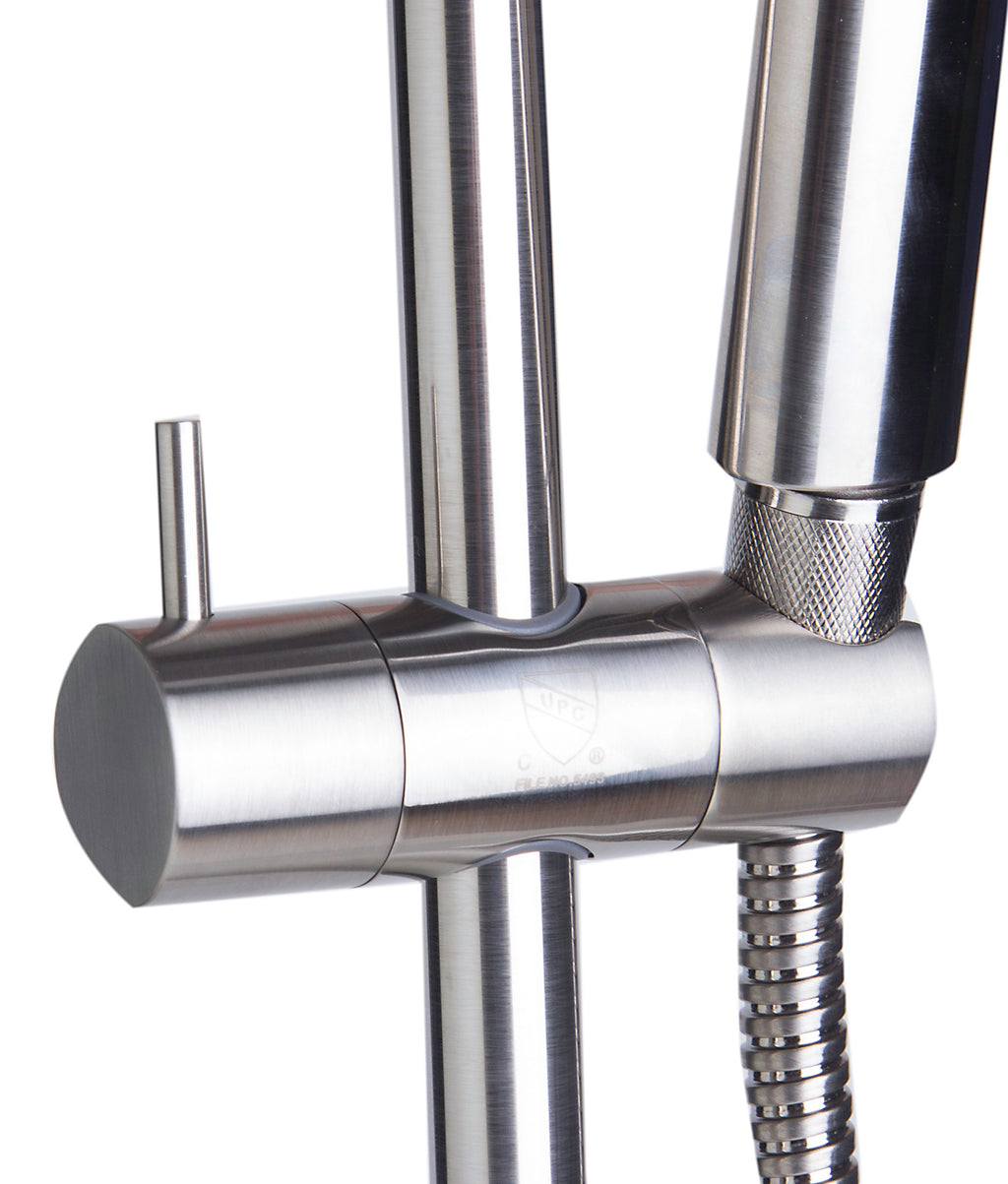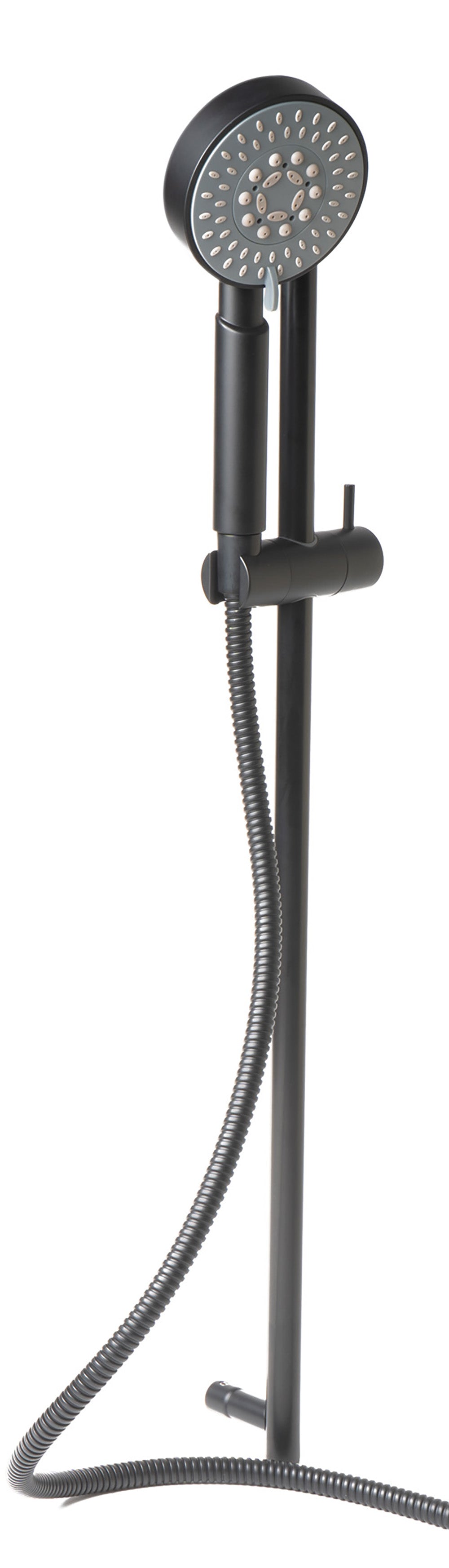 Dimensions: 27.5 x 4.38 x 3. Enjoy the benefits of a hand held shower head by adding this set to your shower. It comes with the showerhead, hose and a sliding rail for adjustable height. Solid brass construction coated with a Black Matte finish Sleek modern design. This unit does not include the valves needed to direct water into the showerhead, a mixer or shower valves must be purchased separately. For those interested in incorporating an above shower head and/or tub filler, a mixer that includes a diverter unit must be purchased. For those interested in a hand held shower experience only, shower valves or a mixer must be purchased. UPC logo of authenticity etched on unit Shower Head Diameter of 4 3/8" Limited lifetime warranty against manufacturing defects in materials and workmanship. Mechanical components are warranted against defect for 5 years from the original purchase.