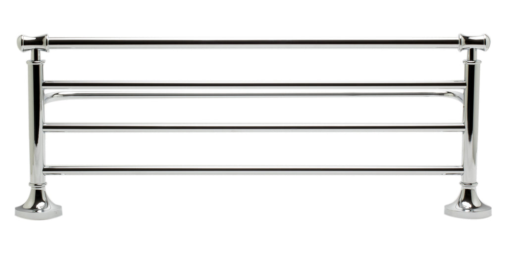 Dimensions: 23.63 x 8.88 x 5.5. All in one towel rack/shelf + towel bar. Expertly crafted solid brass construction for long-lasting durability. Sleek design matches most décor styles. Concealed wall mounted installation keeps your bathroom aesthetics on point. Easy to install DIY with simple (2) screw installation. 1 year warranty against manufacturing defects.