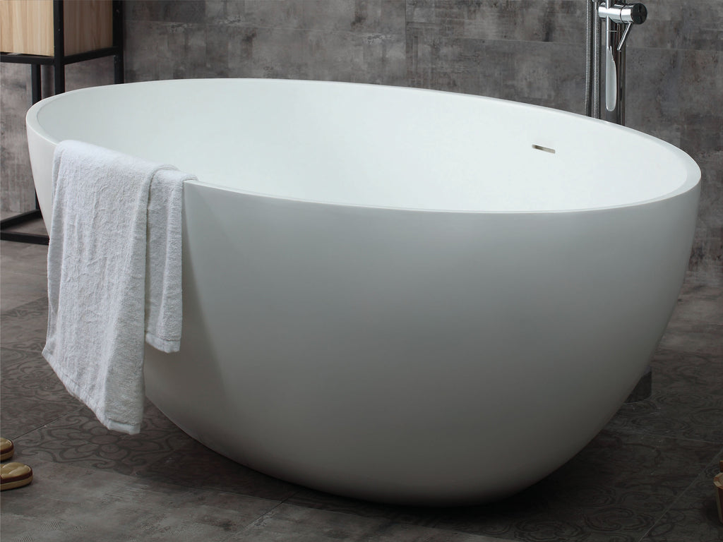 Dimensions: 66.88 x 39.38 x 22. This tub requires that you purchase a floor mounted or wall mounted tub filler. No faucets or predrilled holes included. Built in overflow. Includes concealed matte matching pop-up drain. Free standing tub. Can be installed anywhere with a floor drain outlet. The durable surface of this tub makes it extremely resilient to scratches and stains. However, if any imperfection occurs, it can easily be removed using extra fine sand paper. Certified by Uniform Plumbing Code (cUPC) 1 year warranty against manufacturing defects.