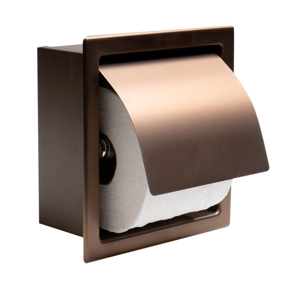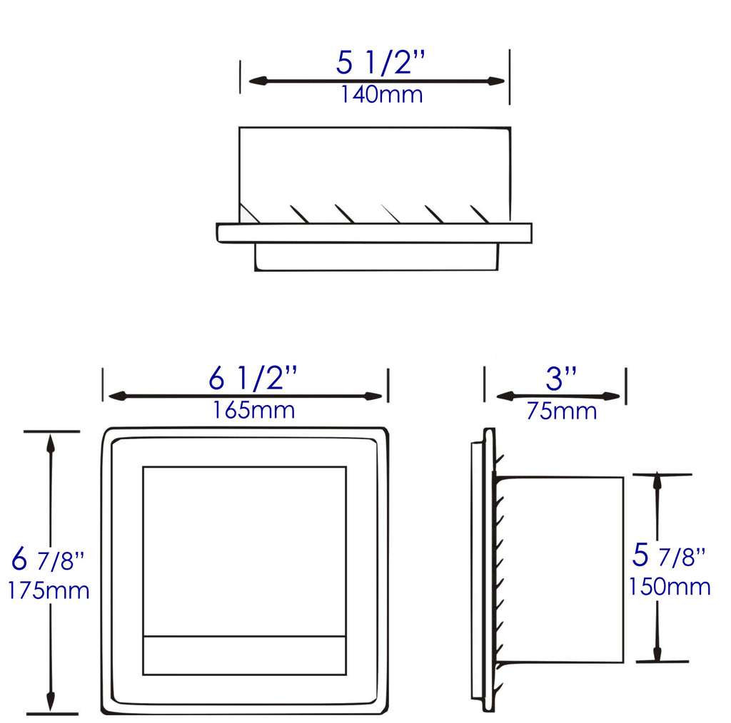 Dimensions: 3 x 6.5 x 6.9. Sleek and simple design perfectly compliments the ALFI brand shower niches to complete the recessed look throughout. Includes a heavy duty metal toilet paper rod with spring for easy paper switch out. Available in a wide assortment of finishes and colors such as brushed black, brushed copper, brushed gold, white, polished stainless steel, and brushed stainless steel finishes. Quick and simple installation using two screws that are provided and screw through two pre-drilled holes in the back. Plastic anchors also provided just in case, but its always best to screw directly into wood if possible. Installs into the wall between the studs for a neat, recessed appearance. The wall cut out dimensions are 6" x 6" Please note that the toilet paper shown in some of the images is for demonstration purposes only and is not included. The metal cover makes it easier to rip off the paper while also offering a more sophisticated look. 1 year warranty against manufacturing defects. 10 year warranty against fading / staining of the glaze.