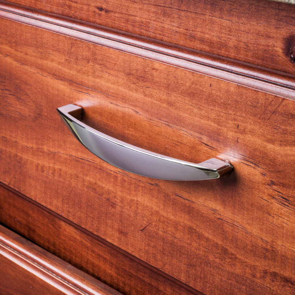 The soft arch and distinctive angle of this 5-11/16" overall length pull in Dull Nickel from Belfast is a monumental work of art. Five distinctive pull shapes make up this collection from Elements, and will complement your contemporary or transitional home with it's minimalist design. Available in three additional finishes. Each item is individually wrapped to protect the item from damage. Attachment hardware is included. The soft arches and distinctive angles of this pull collection from Belfast are a monumental work of art. Five different distinctive pull shapes are included in this collection from Elements and will complement your contemporary or transitional home with their minimalist design. Available in four modern finishes. The soft arches and distinctive angles of this pull collection from Belfast are a monumental work of art. Five different distinctive pull shapes are included in this collection from Elements and will complement your contemporary or transitional home with their minimalist design. Available in four modern finishes. Perfect for Kitchens, Baths, Closets, and Furniture Pristine Dull Nickel is a classic finish that provides warmth to traditional and contemporary spaces. Individually wrapped to protect the product from damage Two 1" and two 1-3/4" breakaway screws included Lifetime Warranty Features higher hand clearance - great for Universal Design and Aging in Place