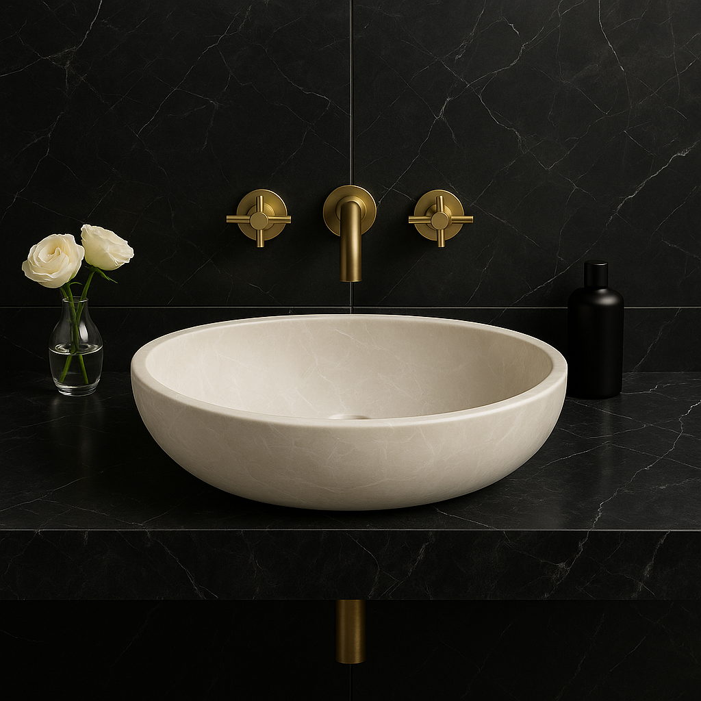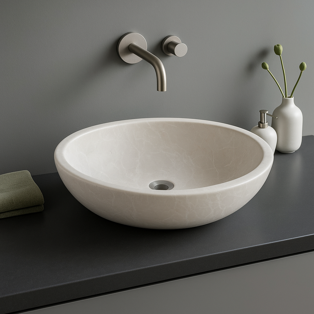 Botticino Marble Sink – Soft Elegance with Timeless Warmth