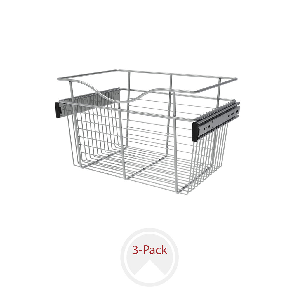 Rev-A-Shelf® Closet Baskets are a perfect addition to bring your closet items to your fingertips. Available in 3-finishes and multiple sizes, you will have no problem finding the right size for your custom closet system. Features a sleek design, heavy gauge wire construction and full-extension ball-bearing slides for that easy open and close.. Included: (3) Chrome closet baskets and mounting hardware