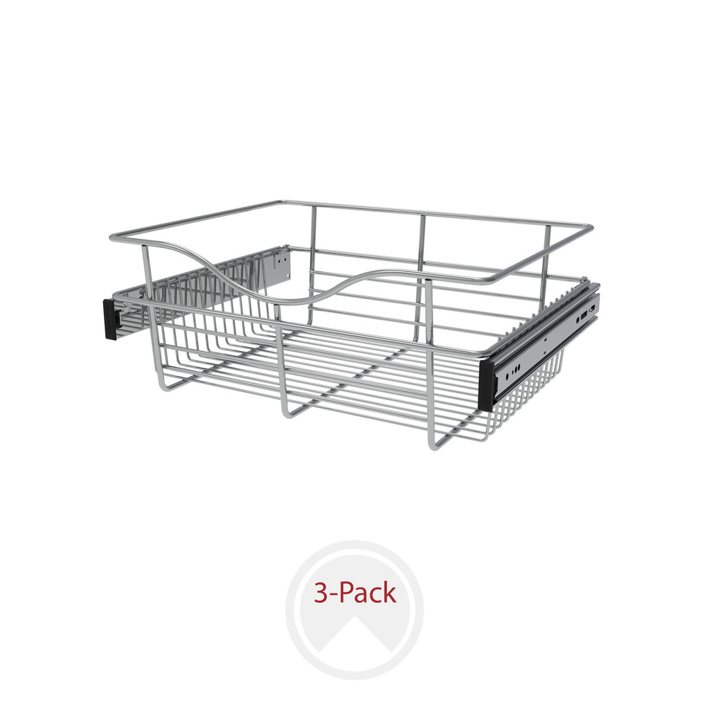 Rev-A-Shelf® Closet Baskets are a perfect addition to bring your closet items to your fingertips. Available in 3-finishes and multiple sizes, you will have no problem finding the right size for your custom closet system. Features a sleek design, heavy gauge wire construction and full-extension ball-bearing slides for that easy open and close.. Included: (3) Chrome closet baskets and mounting hardware