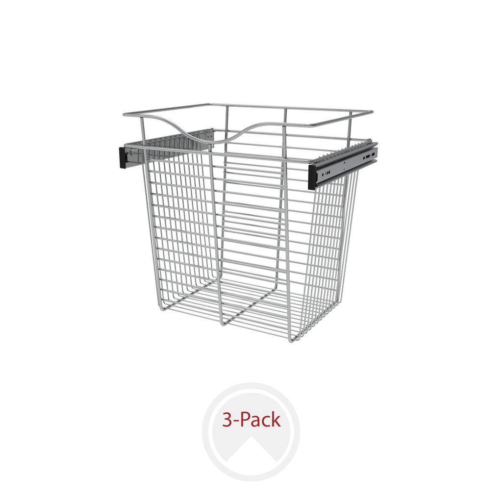 Rev-A-Shelf® Closet Baskets are a perfect addition to bring your closet items to your fingertips. Available in 3-finishes and multiple sizes, you will have no problem finding the right size for your custom closet system. Features a sleek design, heavy gauge wire construction and full-extension ball-bearing slides for that easy open and close.. Included: (3) Chrome closet baskets and mounting hardware