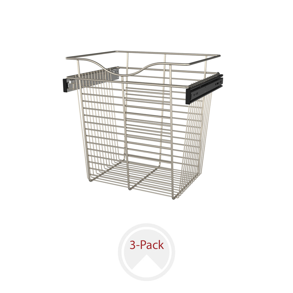 Rev-A-Shelf® Closet Baskets are a perfect addition to bring your closet items to your fingertips. Available in 3-finishes and multiple sizes, you will have no problem finding the right size for your custom closet system. Features a sleek design, heavy gauge wire construction and full-extension ball-bearing slides for that easy open and close.. Included: (3) Satin Nickel closet baskets and mounting hardware