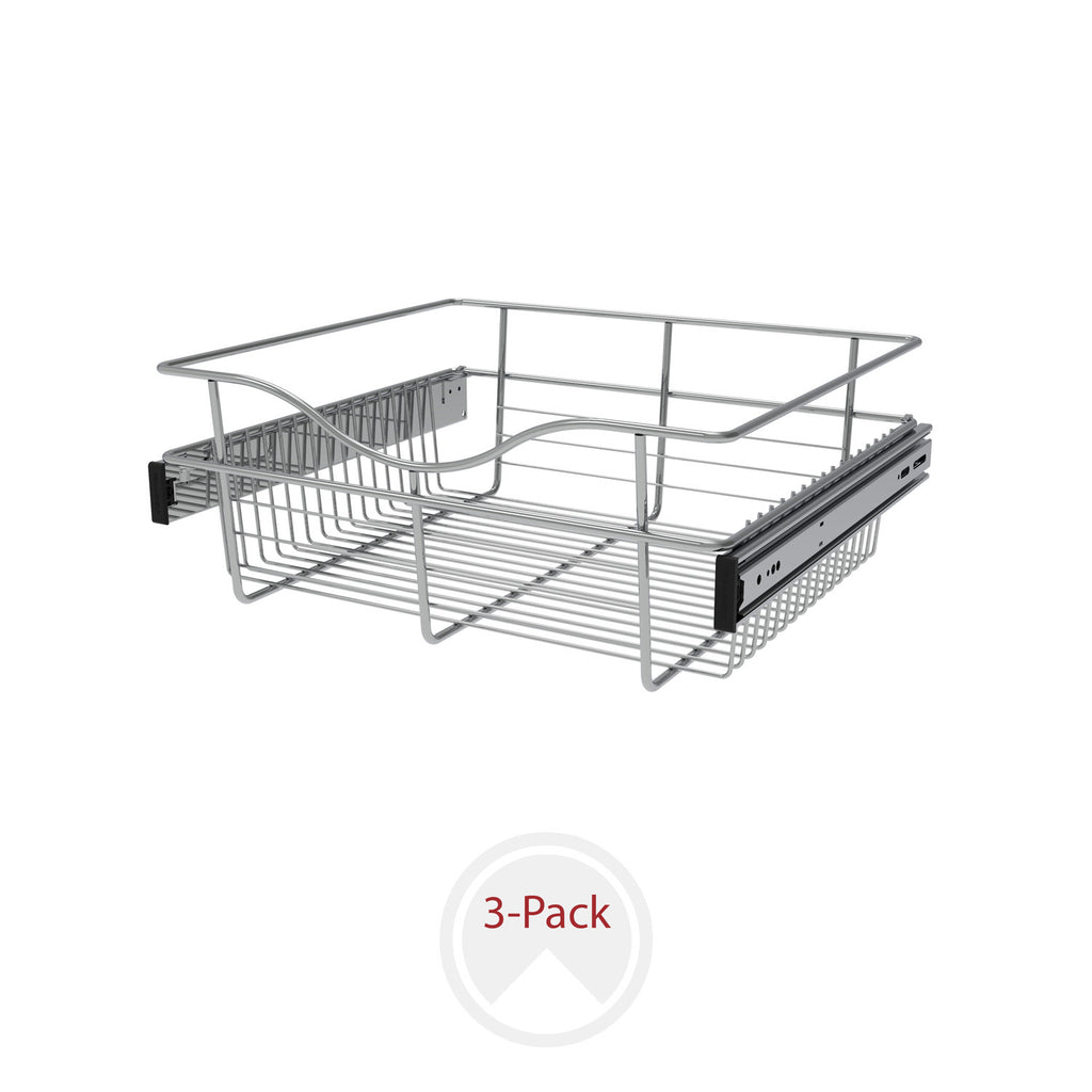 Rev-A-Shelf® Closet Baskets are a perfect addition to bring your closet items to your fingertips. Available in 3-finishes and multiple sizes, you will have no problem finding the right size for your custom closet system. Features a sleek design, heavy gauge wire construction and full-extension ball-bearing slides for that easy open and close.. Included: (3) Chrome closet baskets and mounting hardware