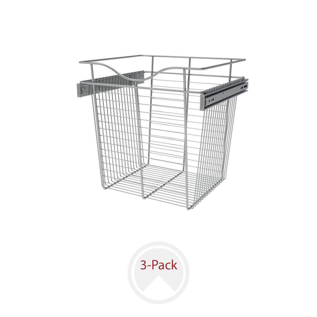 Rev-A-Shelf® Closet Baskets are a perfect addition to bring your closet items to your fingertips. Available in 3-finishes and multiple sizes, you will have no problem finding the right size for your custom closet system. Features a sleek design, heavy gauge wire construction and full-extension ball-bearing slides for that easy open and close.. Included: (3) Chrome closet baskets and mounting hardware