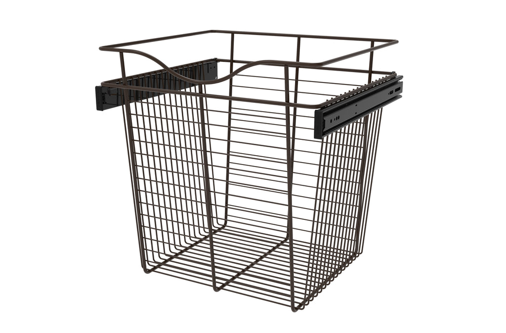 Rev-A-Shelf® Closet Baskets are a perfect addition to bring your closet items to your fingertips. Available in 3-finishes and multiple sizes, you will have no problem finding the right size for your custom closet system. Features a sleek design, heavy gauge wire construction and full-extension ball-bearing slides for that easy open and close.. Included: (1) Oil Rubbed Bronze closet basket and mounting hardware