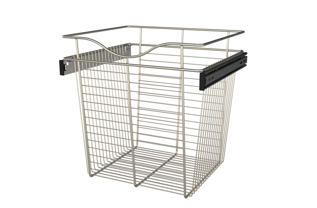 Rev-A-Shelf® Closet Baskets are a perfect addition to bring your closet items to your fingertips. Available in 3-finishes and multiple sizes, you will have no problem finding the right size for your custom closet system. Features a sleek design, heavy gauge wire construction and full-extension ball-bearing slides for that easy open and close.. Included: (1) Satin Nickel closet basket and mounting hardware