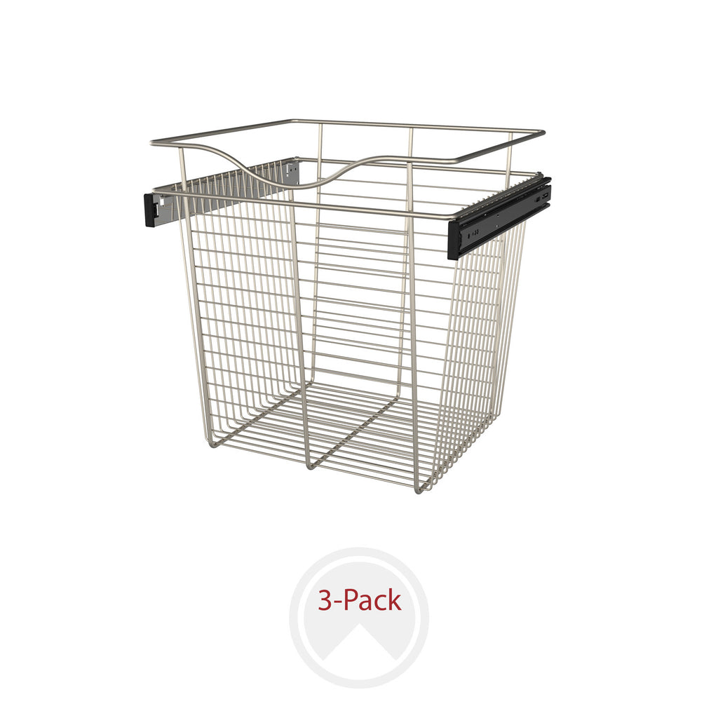 Rev-A-Shelf® Closet Baskets are a perfect addition to bring your closet items to your fingertips. Available in 3-finishes and multiple sizes, you will have no problem finding the right size for your custom closet system. Features a sleek design, heavy gauge wire construction and full-extension ball-bearing slides for that easy open and close.. Included: (3) Satin Nickel closet baskets and mounting hardware