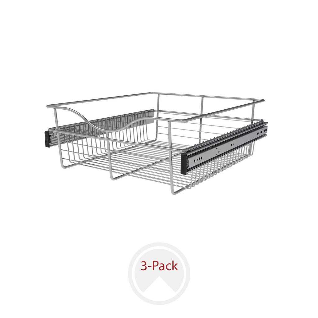 Rev-A-Shelf® Closet Baskets are a perfect addition to bring your closet items to your fingertips. Available in 3-finishes and multiple sizes, you will have no problem finding the right size for your custom closet system. Features a sleek design, heavy gauge wire construction and full-extension ball-bearing slides for that easy open and close.. Included: (3) Chrome closet baskets and mounting hardware