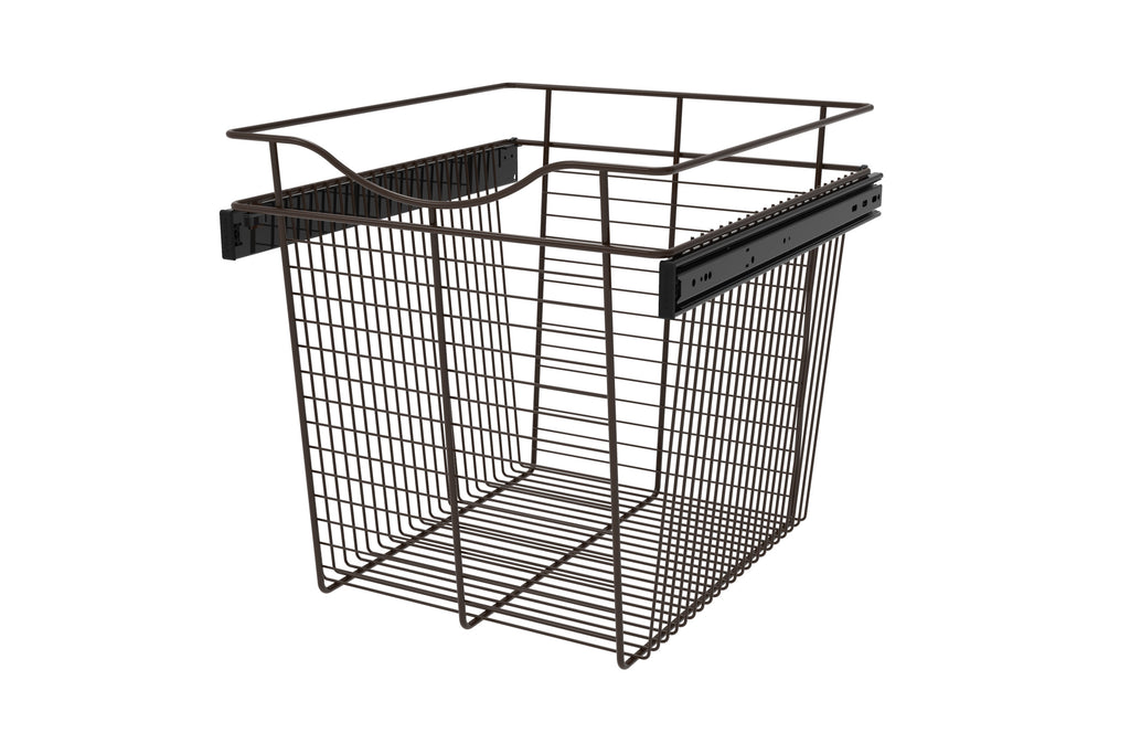 Rev-A-Shelf® Closet Baskets are a perfect addition to bring your closet items to your fingertips. Available in 3-finishes and multiple sizes, you will have no problem finding the right size for your custom closet system. Features a sleek design, heavy gauge wire construction and full-extension ball-bearing slides for that easy open and close.. Included: (1) Oil Rubbed Bronze closet basket and mounting hardware
