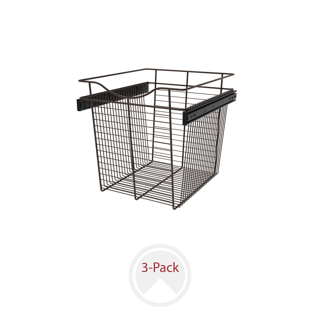 Rev-A-Shelf® Closet Baskets are a perfect addition to bring your closet items to your fingertips. Available in 3-finishes and multiple sizes, you will have no problem finding the right size for your custom closet system. Features a sleek design, heavy gauge wire construction and full-extension ball-bearing slides for that easy open and close.. Included: (3) Oil Rubbed Bronze closet baskets and mounting hardware