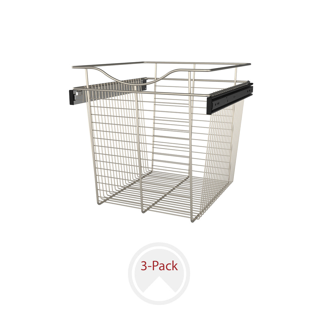 Rev-A-Shelf® Closet Baskets are a perfect addition to bring your closet items to your fingertips. Available in 3-finishes and multiple sizes, you will have no problem finding the right size for your custom closet system. Features a sleek design, heavy gauge wire construction and full-extension ball-bearing slides for that easy open and close.. Included: (3) Satin Nickel closet baskets and mounting hardware