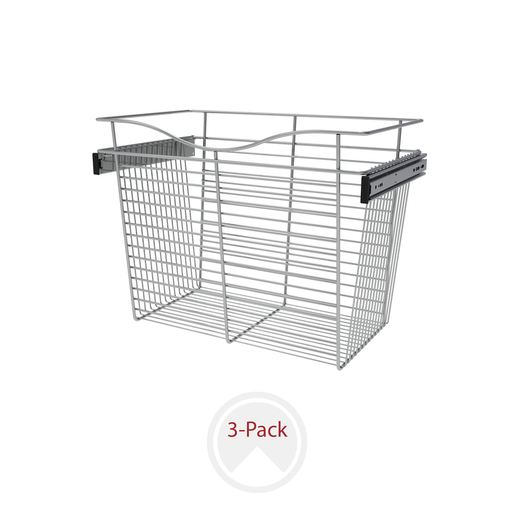 Rev-A-Shelf® Closet Baskets are a perfect addition to bring your closet items to your fingertips. Available in 3-finishes and multiple sizes, you will have no problem finding the right size for your custom closet system. Features a sleek design, heavy gauge wire construction and full-extension ball-bearing slides for that easy open and close.. Included: (3) Chrome closet baskets and mounting hardware