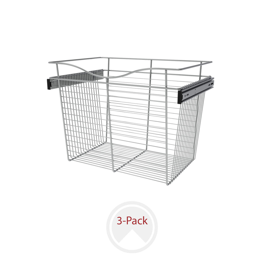 Rev-A-Shelf® Closet Baskets are a perfect addition to bring your closet items to your fingertips. Available in 3-finishes and multiple sizes, you will have no problem finding the right size for your custom closet system. Features a sleek design, heavy gauge wire construction and full-extension ball-bearing slides for that easy open and close.. Included: (3) Chrome closet baskets and mounting hardware