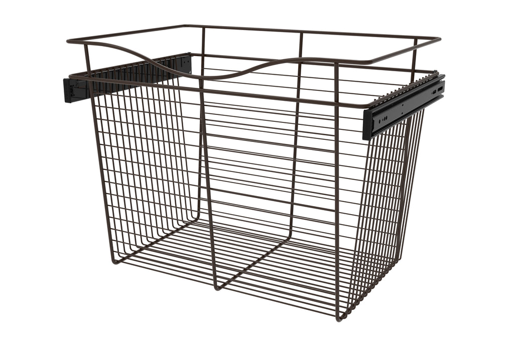 Rev-A-Shelf® Closet Baskets are a perfect addition to bring your closet items to your fingertips. Available in 3-finishes and multiple sizes, you will have no problem finding the right size for your custom closet system. Features a sleek design, heavy gauge wire construction and full-extension ball-bearing slides for that easy open and close.. Included: (1) Oil Rubbed Bronze closet basket and mounting hardware