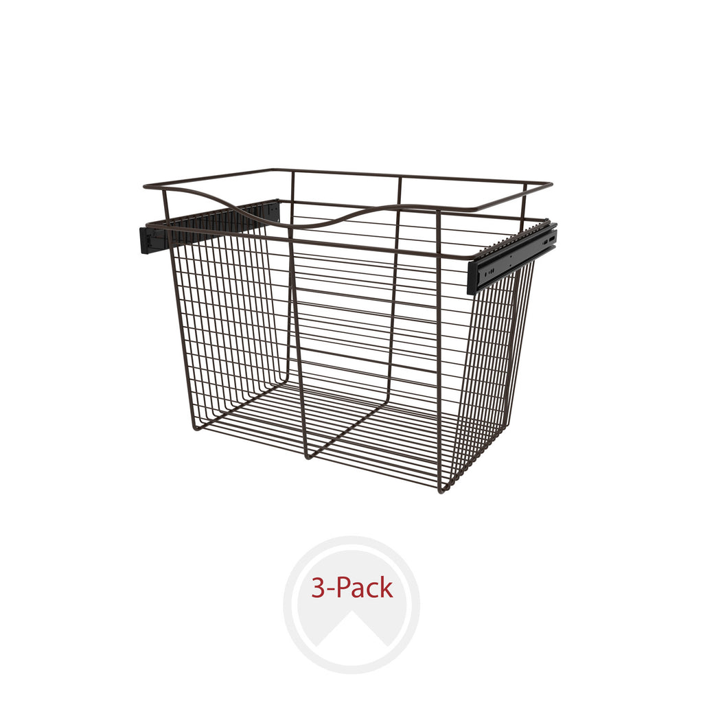 Rev-A-Shelf® Closet Baskets are a perfect addition to bring your closet items to your fingertips. Available in 3-finishes and multiple sizes, you will have no problem finding the right size for your custom closet system. Features a sleek design, heavy gauge wire construction and full-extension ball-bearing slides for that easy open and close.. Included: (3) Oil Rubbed Bronze closet baskets and mounting hardware