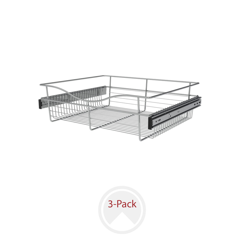 Rev-A-Shelf® Closet Baskets are a perfect addition to bring your closet items to your fingertips. Available in 3-finishes and multiple sizes, you will have no problem finding the right size for your custom closet system. Features a sleek design, heavy gauge wire construction and full-extension ball-bearing slides for that easy open and close.. Included: (3) Chrome closet baskets and mounting hardware