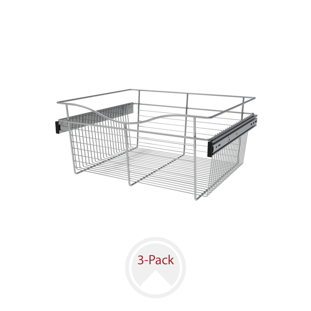Rev-A-Shelf® Closet Baskets are a perfect addition to bring your closet items to your fingertips. Available in 3-finishes and multiple sizes, you will have no problem finding the right size for your custom closet system. Features a sleek design, heavy gauge wire construction and full-extension ball-bearing slides for that easy open and close.. Included: (3) Chrome closet baskets and mounting hardware