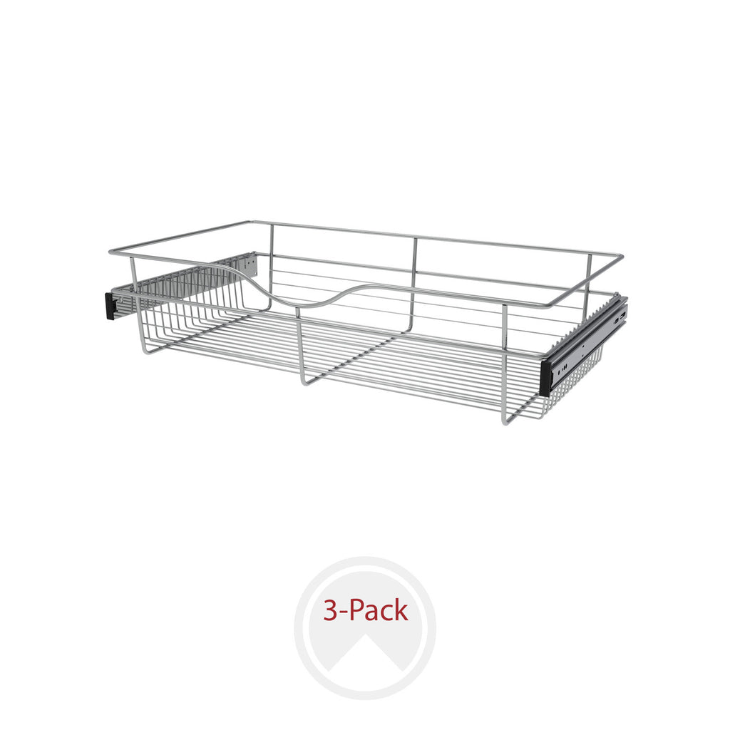 Rev-A-Shelf® Closet Baskets are a perfect addition to bring your closet items to your fingertips. Available in 3-finishes and multiple sizes, you will have no problem finding the right size for your custom closet system. Features a sleek design, heavy gauge wire construction and full-extension ball-bearing slides for that easy open and close.. Included: (3) Chrome closet baskets and mounting hardware
