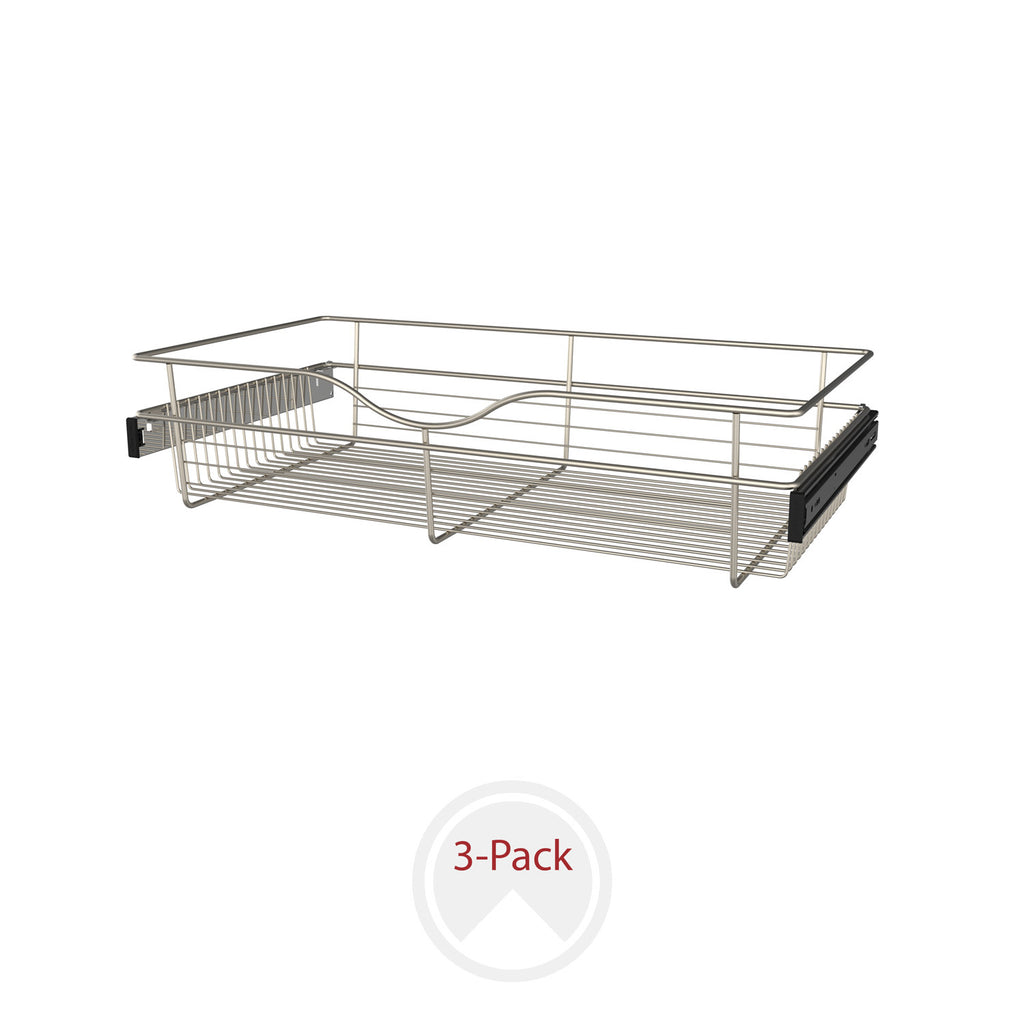 Rev-A-Shelf® Closet Baskets are a perfect addition to bring your closet items to your fingertips. Available in 3-finishes and multiple sizes, you will have no problem finding the right size for your custom closet system. Features a sleek design, heavy gauge wire construction and full-extension ball-bearing slides for that easy open and close.. Included: (3) Satin Nickel closet baskets and mounting hardware
