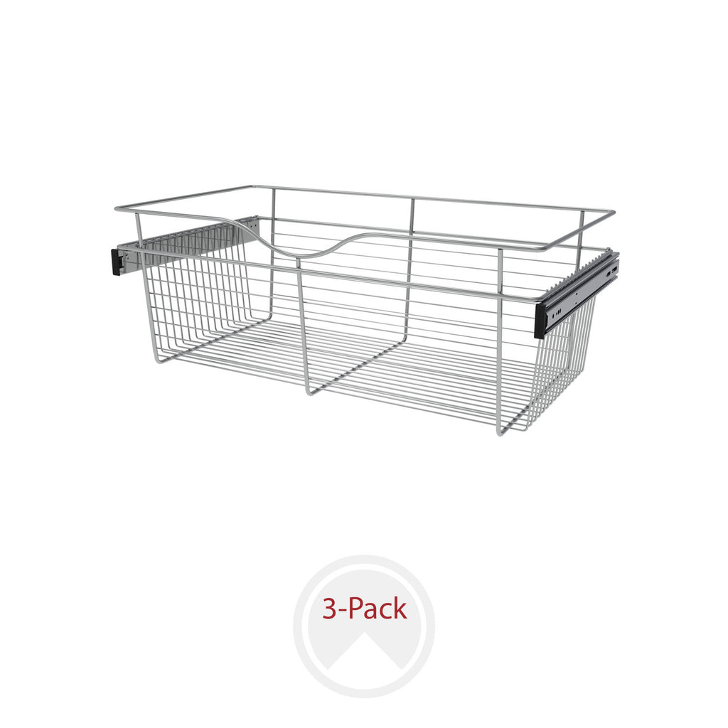 Rev-A-Shelf® Closet Baskets are a perfect addition to bring your closet items to your fingertips. Available in 3-finishes and multiple sizes, you will have no problem finding the right size for your custom closet system. Features a sleek design, heavy gauge wire construction and full-extension ball-bearing slides for that easy open and close.. Included: (3) Chrome closet baskets and mounting hardware
