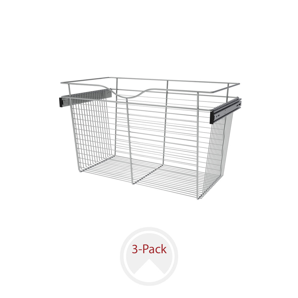 Rev-A-Shelf® Closet Baskets are a perfect addition to bring your closet items to your fingertips. Available in 3-finishes and multiple sizes, you will have no problem finding the right size for your custom closet system. Features a sleek design, heavy gauge wire construction and full-extension ball-bearing slides for that easy open and close.. Included: (3) Chrome closet baskets and mounting hardware
