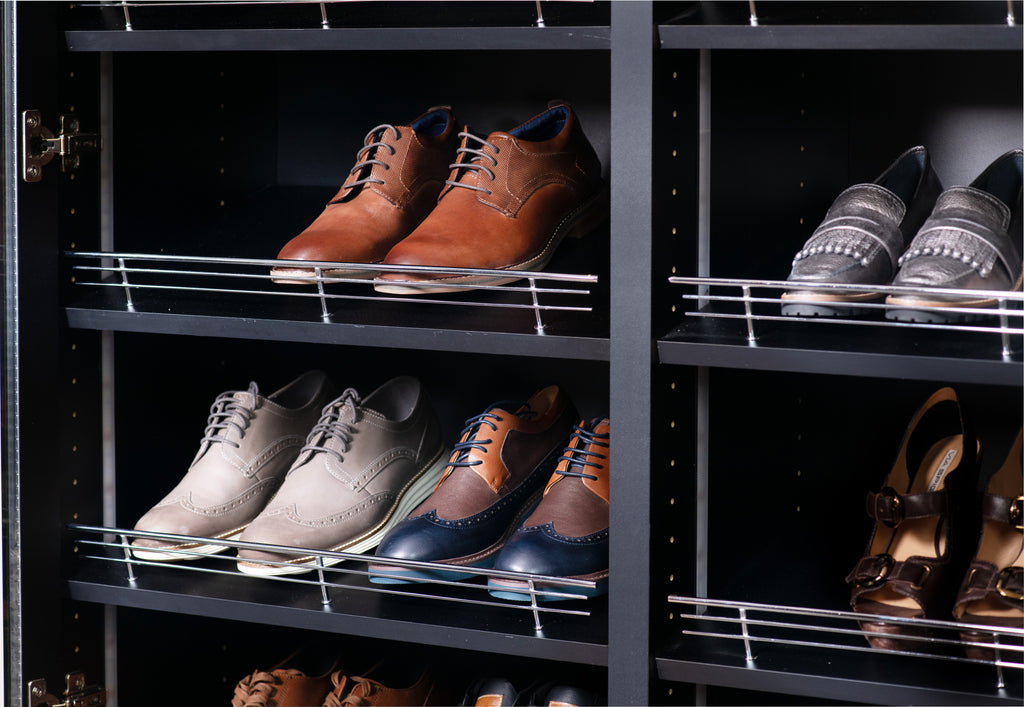 Organization to your closet does not have to be complicated. No easier way to add some class and organization to your closet with Rev-A-Shelf® Wire Shoe Rails. Available in 3 sizes and finishes to compliment your need and style.. Included: (10) Chrome shoe rails