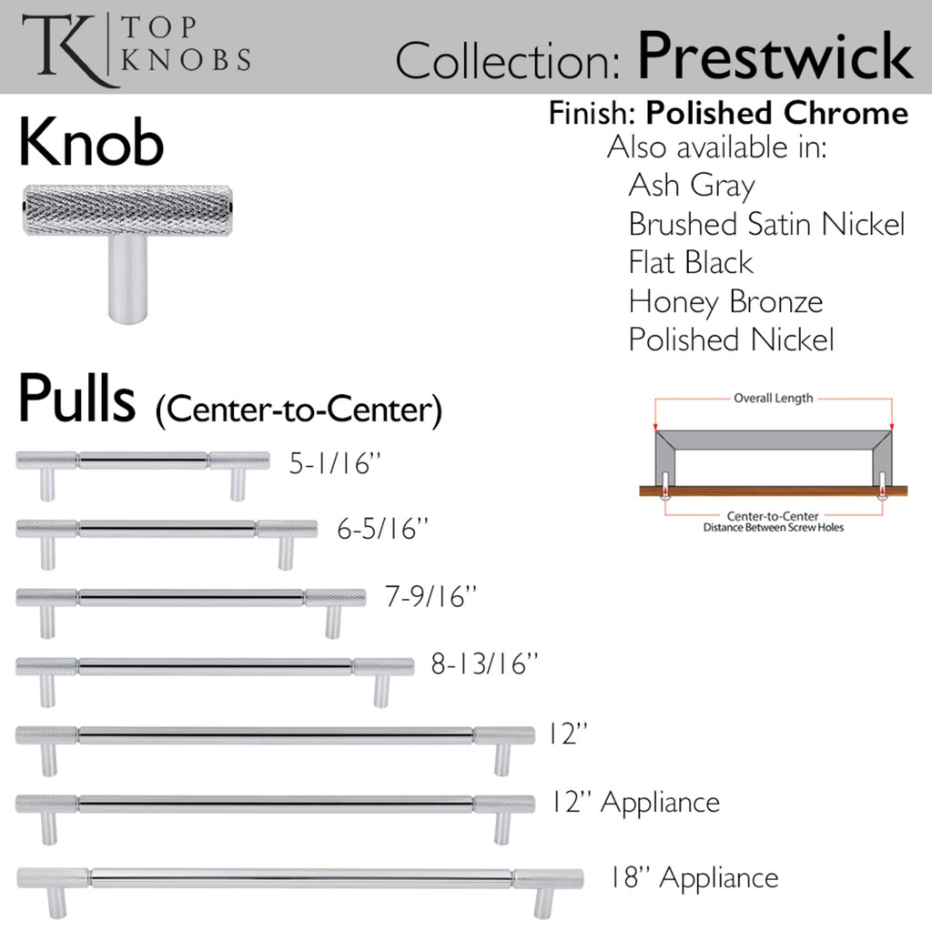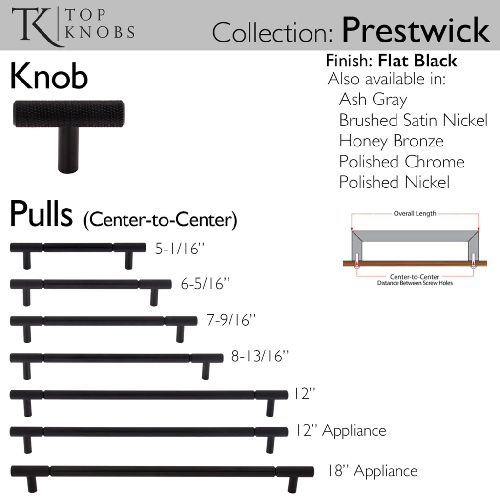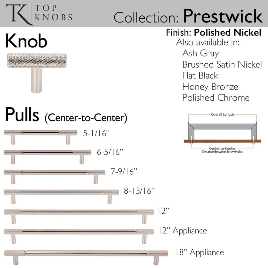 The appliance pull from Top Knobs’ Prestwick collection gives a new twist to the usual bar pull design. With industrial inspired style, it features diamond-patterned textured ends that add a modern and luxurious touch to your home décor. From kitchens and bathrooms to laundry rooms and home offices, Top Knobs decorative cabinet hardware continues to shape home design with a range of options. Top Knobs offers the most extensive line of premium cabinet hardware allowing the creative freedom to complete the perfect look. Leave the finishing touch to the brand designers trust!, The appliance pull from Top Knobs’ Prestwick collection gives a new twist to the usual bar pull design. With industrial inspired style, it features diamond-patterned textured ends that add a modern and luxurious touch to your home décor. From kitchens and bathrooms to laundry rooms and home offices, Top Knobs decorative cabinet hardware continues to shape home design with a range of options. Top Knobs offers the most extensive line of premium cabinet hardware allowing the creative freedom to complete the perfect look. Leave the finishing touch to the brand designers trust!, Complete collection with coordinating knob available, If you like the way the Prestwick pull appliance looks, you'll love the way it feels!, Complete collection with coordinating knob available, If you like the way the Prestwick pull appliance looks, you'll love the way it feels!, Finishes that will withstand the rigors of daily use, Buy with confidence knowing Top Knobs offers a Lifetime Warranty, , , , ,