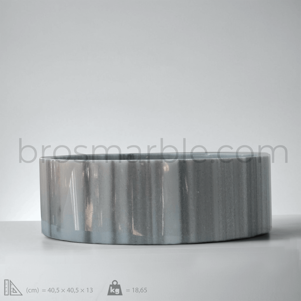 Upgrade your bathroom with the handcrafted Gray Marmara Cylindrical Vessel Sink, a stunning fusion of contemporary design and timeless elegance. Carved from 100% premium Marmara marble, this sink showcases striking gray veining patterns, ensuring that each piece is unique. The smooth polished finish enhances the depth and texture of the stone, creating a sophisticated focal point for modern and minimalist interiors.