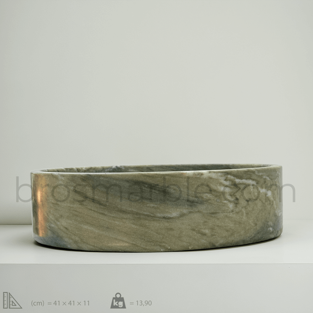 Infuse your bathroom with organic elegance and timeless sophistication with the handcrafted Green Marble Cylindrical Vessel Sink. Expertly carved from premium Uşak Verde Laguna marble, this vessel sink showcases rich green hues and intricate veining—each piece a singular work of natural art.