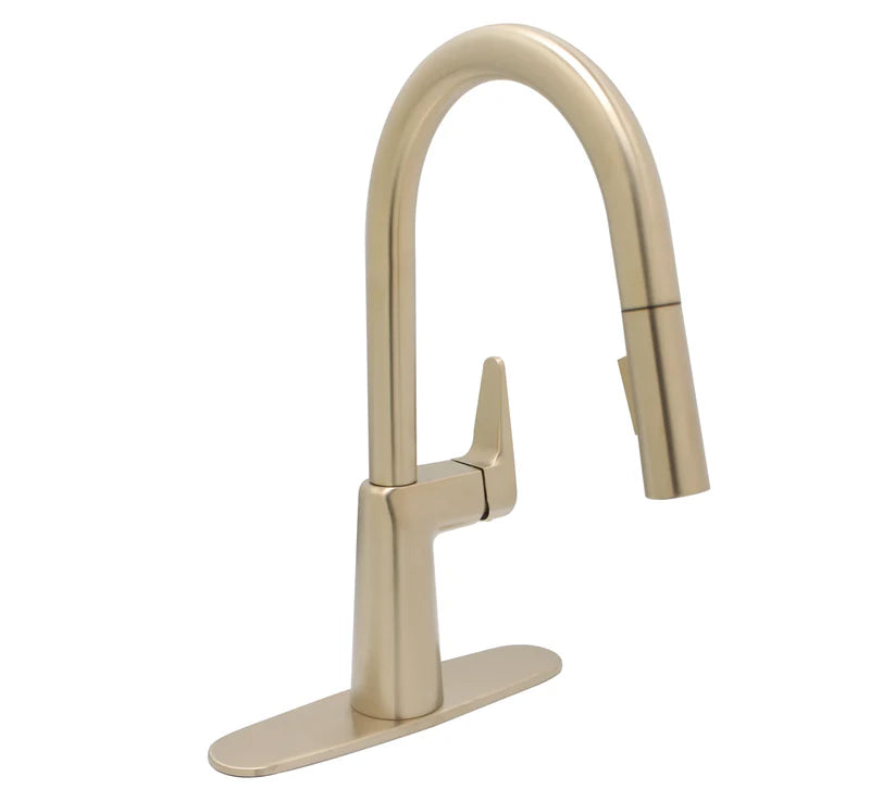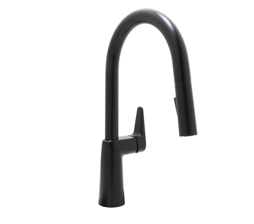 The Loma kitchen faucet offers a Sleek and modern styling with its high-arc spout and fine details that feature a timeless elegance. With its artistic design and dual function pull-down spray head the Loma is an excellent showpiece for the kitchen.