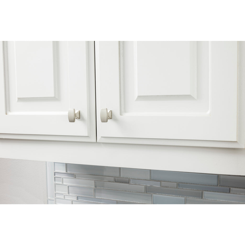 4-pack of 1-1/2" Overall Length Cabinet Knob. Packaged with (4) 8/32" x 1" and (4) 1-3/4" breakaway screws. Satin Nickel Finish.