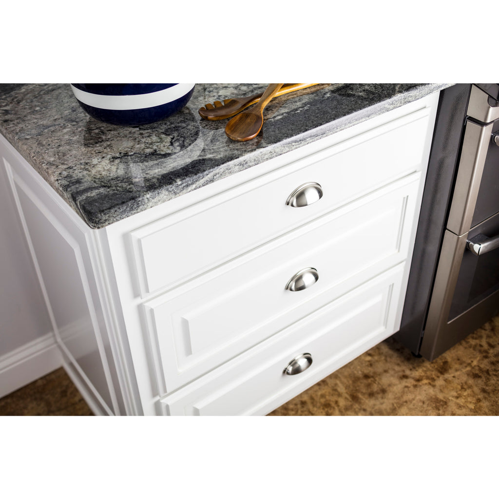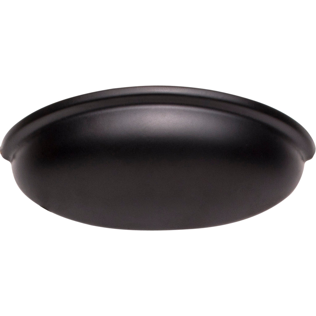 2-pack of 3-11/16" Overall Length Small Cup Cabinet Pulls. Holes are 3" center-to-center. Packaged with (4) 8/32" x 1" and (4) 1-3/4" breakaway screwss. Matte Black Finish.