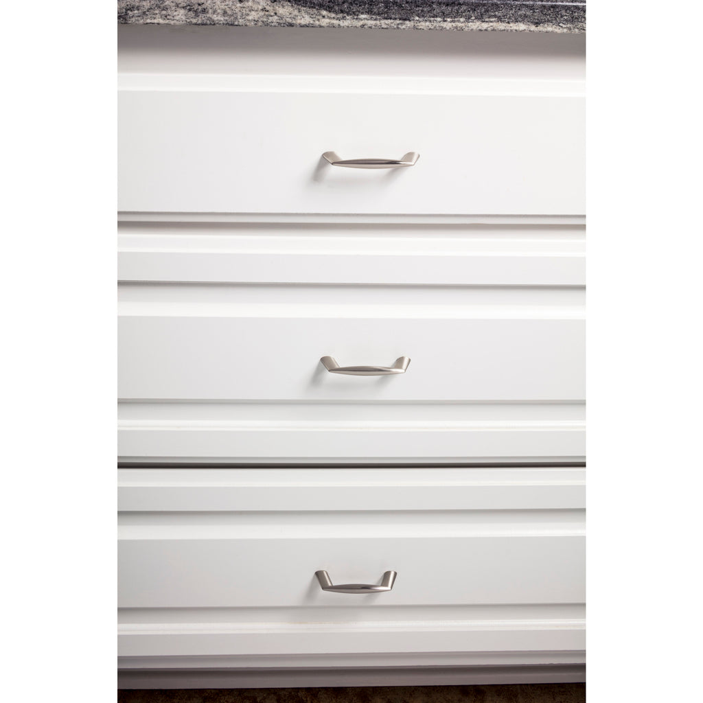2-pack of 3-3/4" Overall Length Zinc Die Cast Cabinet Pulls. Holes are 3" center-to-center. Packaged with (4) 8/32" x 1" and (4) 1-3/4" breakaway screws. Satin Nickel Finish.