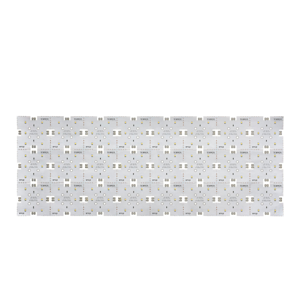 Paper-thin illumination, Snip panels have the flexibility to conform to curved surfaces and wrap around objects for continuous even illumination. Sold in 24" x 9" (610 mm. x 229 mm.) panels, the extremely lightweight LED sheets can be snipped into 3" x 3" (76 mm. x 76 mm.) squares and re-connected into any custom configuration; a versatile lighting solution for unique applications.