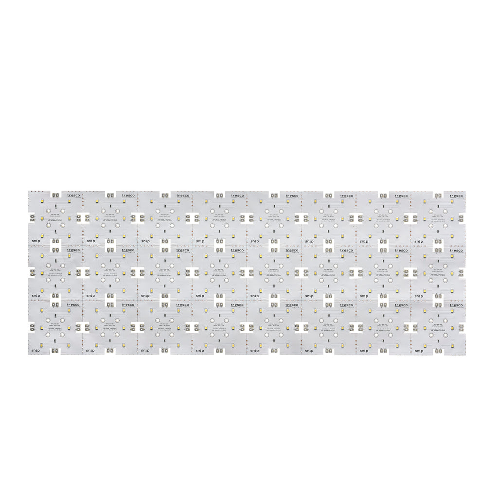 Paper-thin illumination, Snip panels have the flexibility to conform to curved surfaces and wrap around objects for continuous even illumination. Sold in 24" x 9" (610 mm. x 229 mm.) panels, the extremely lightweight LED sheets can be snipped into 3" x 3" (76 mm. x 76 mm.) squares and re-connected into any custom configuration; a versatile lighting solution for unique applications.