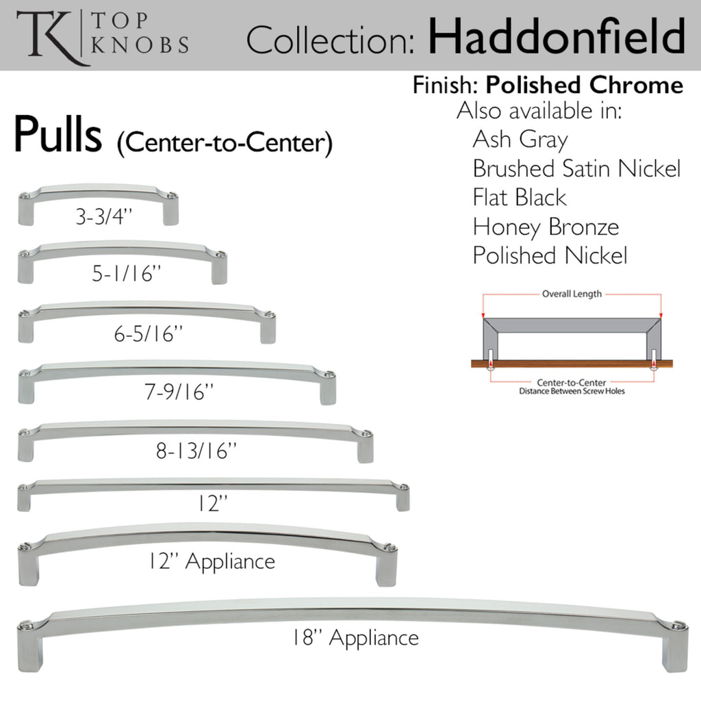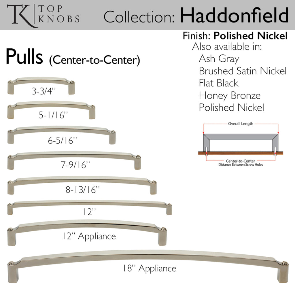 Offering classic designs with a timeless twist, the Haddonfield pull adds a touch of industrial flair to any modern or transitional space with its clever design of faux screws on each end. From kitchens and bathrooms to laundry rooms and home offices, Top Knobs decorative cabinet hardware continues to shape home design. Top Knobs offers the most extensive line of premium cabinet hardware allowing the creative freedom to complete the perfect look. Leave the finishing touch to the brand designers trust!, Offering classic designs with a timeless twist, the Haddonfield pull adds a touch of industrial flair to any modern or transitional space with its clever design of faux screws on each end. From kitchens and bathrooms to laundry rooms and home offices, Top Knobs decorative cabinet hardware continues to shape home design. Top Knobs offers the most extensive line of premium cabinet hardware allowing the creative freedom to complete the perfect look. Leave the finishing touch to the brand designers trust!, Coordinating appliance pulls available to complete the look, If you like the way the Haddonfield pull looks, you'll love the way it feels!, Coordinating appliance pulls available to complete the look, If you like the way the Haddonfield pull looks, you'll love the way it feels!, Finishes that will withstand the rigors of daily use, Buy with confidence knowing Top Knobs offers a Lifetime Warranty, , , , ,