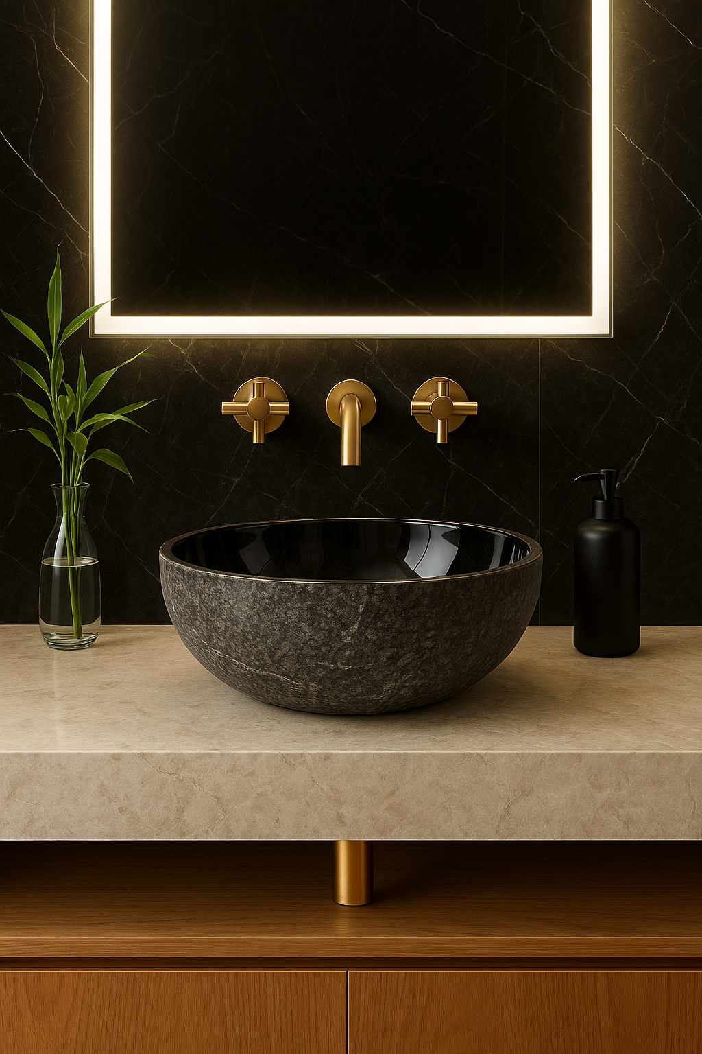 Combining sculptural character with high-end craftsmanship, this sink is ideal for designer bathrooms seeking depth, contrast, and uniqueness. Its natural texture sets it apart from traditional polished basins, while still offering durability and daily functionality.