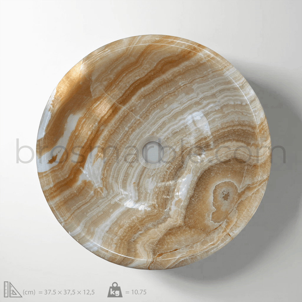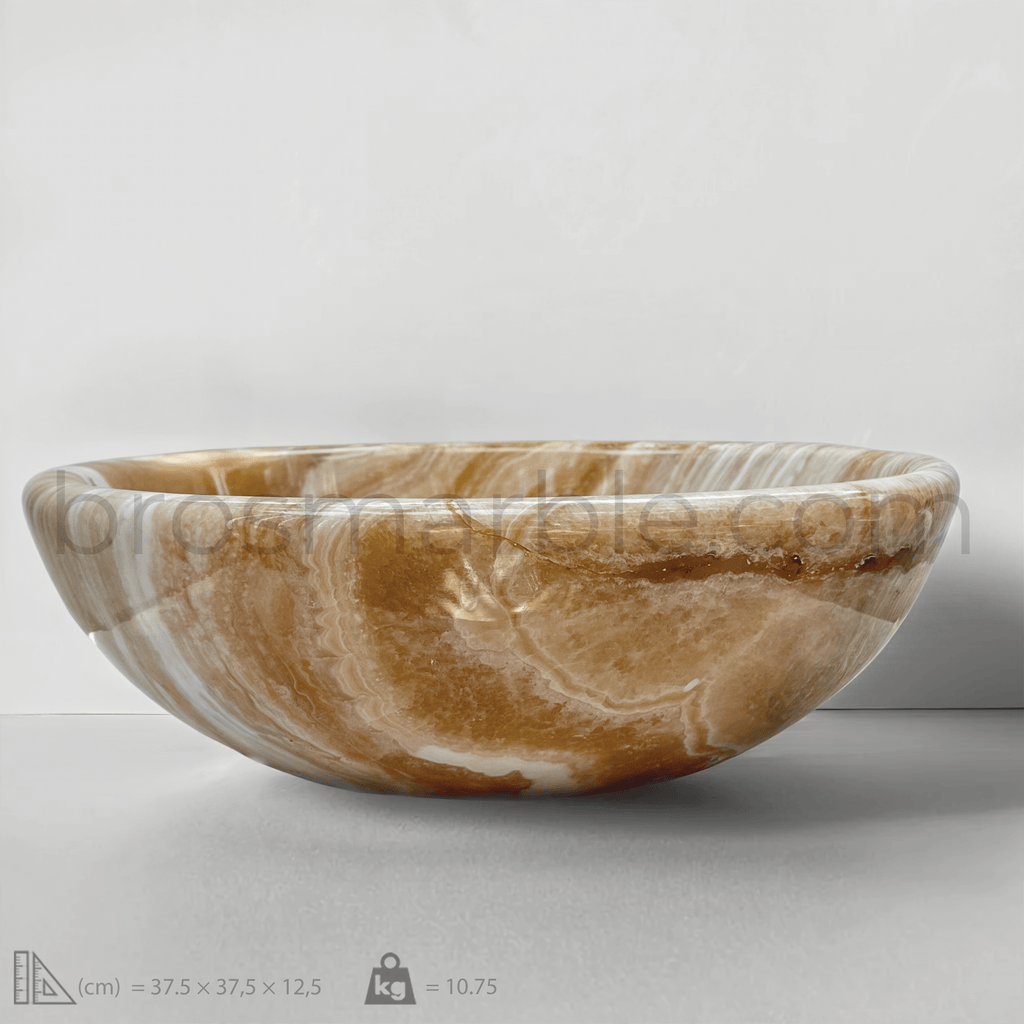 Transform your bathroom into a lavish retreat with the handcrafted Orange Onyx Round Vessel Sink. Carved from 100% natural orange onyx, this stunning masterpiece showcases rich honey and caramel veining, ensuring that each piece is truly one-of-a-kind. The smooth, polished surface highlights the stone’s natural translucence, creating a warm, glowing effect when exposed to light.
