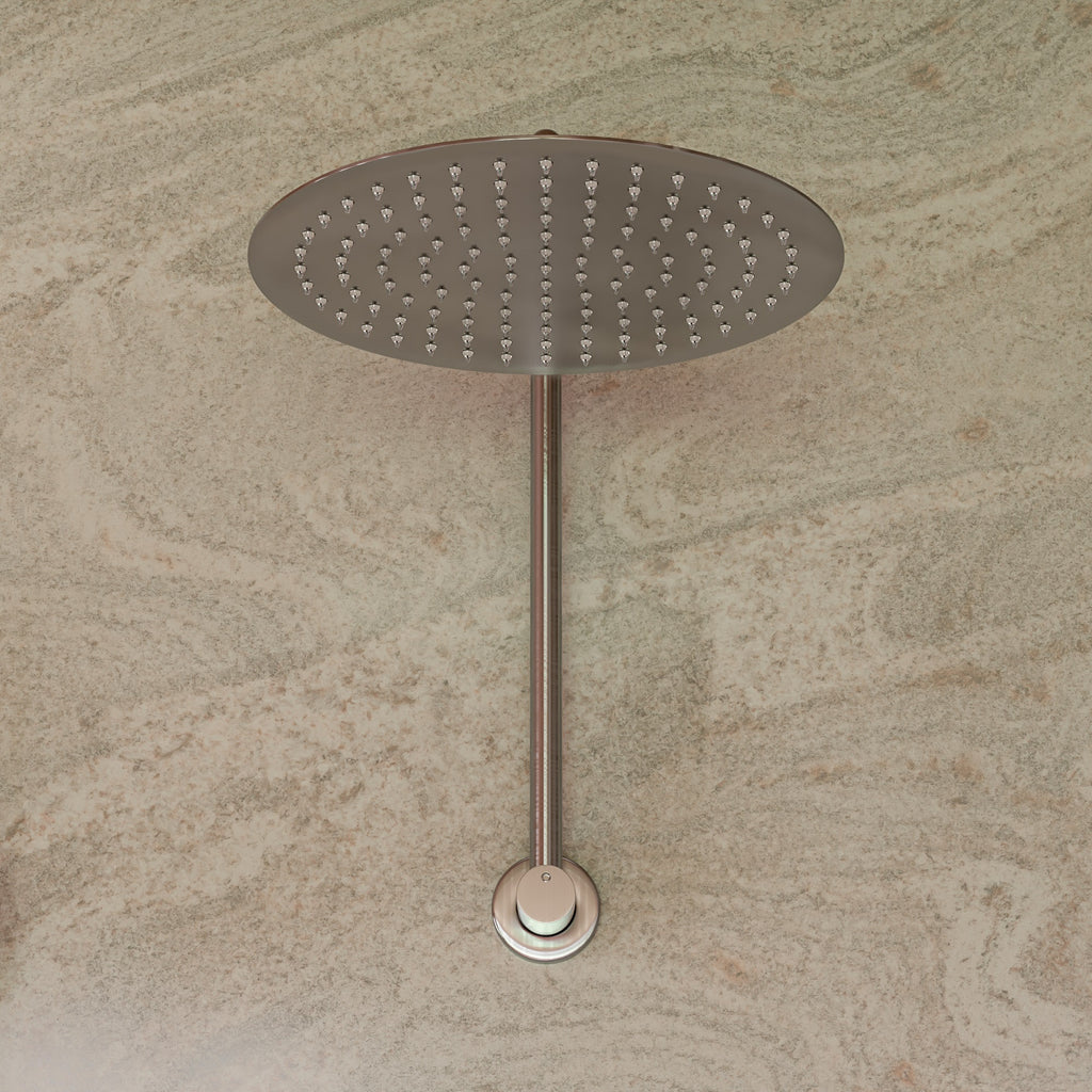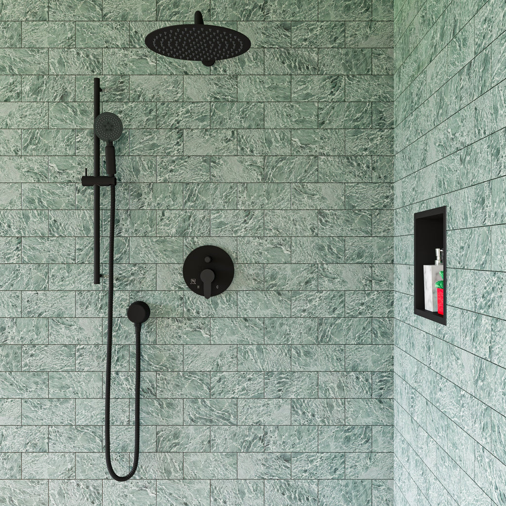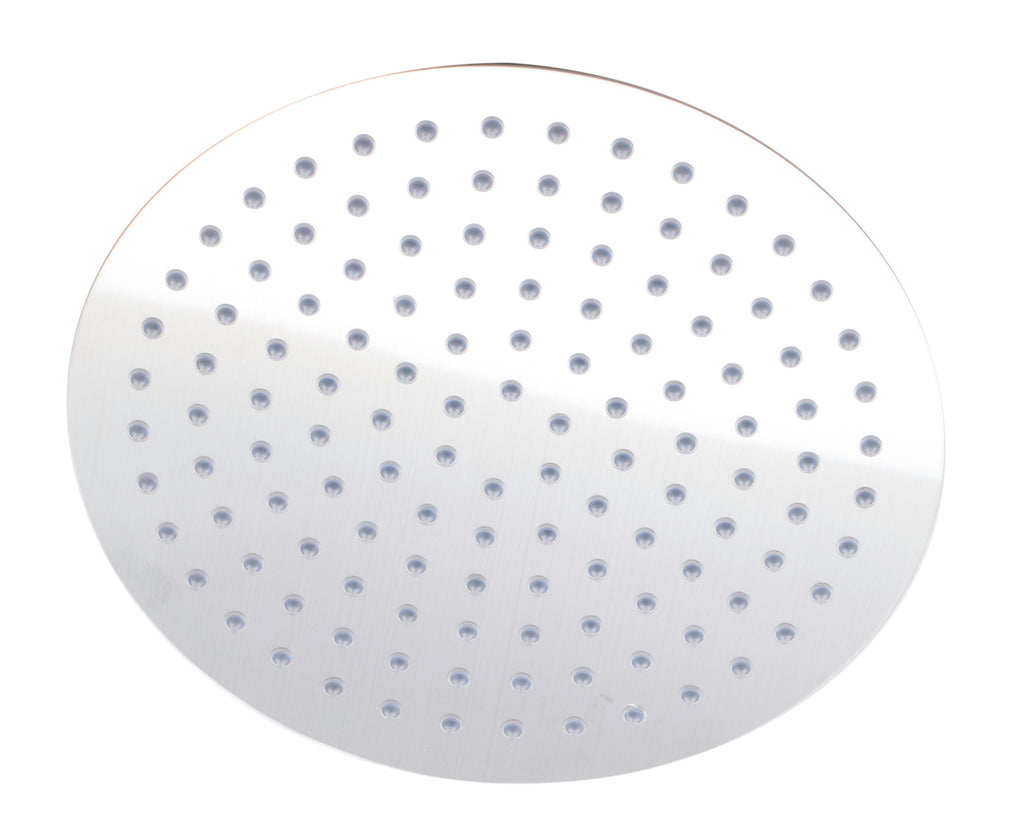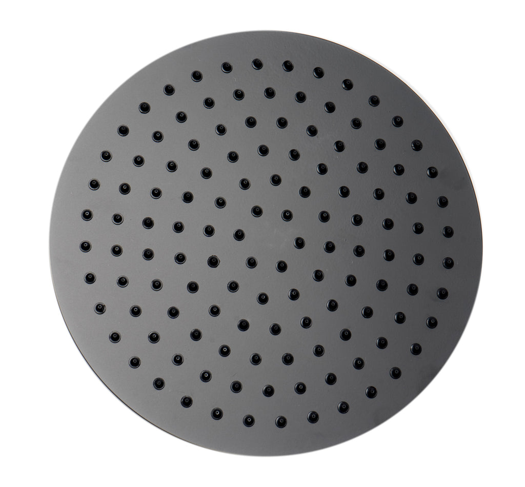 Dimensions: 12 x 12 x 0.13. The entire shower head body is made of stylish black matte solid stainless steel! Round shape 12" in Diameter and only 2mm thick. Features a swivel adapter which allows you to angle the shower head during use. Clear rubber nozzles allow for easy cleaning if clogged by debris. Comes with 5 replacement nozzles. Water comes out of 126 tapered nozzles! 1 year warranty against manufacturing defects.
