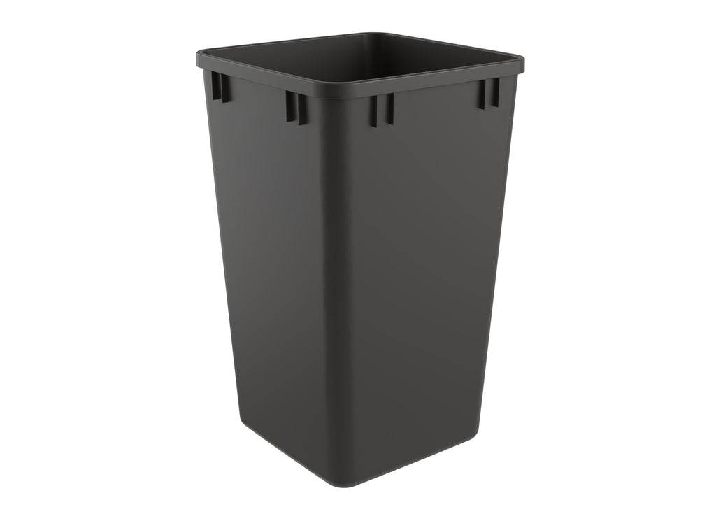 Do you just simply need a replacement or new trash bin? Rev-A-Shelf® polymer bins are not only made in the USA, but injection molded with the highest quality Polypropylene. Though designed to work with ALL of the Rev-A-Shelf® waste containers and trash pull-outs, they can be used for extra trash storage no matter where you need it. Available in variety of sizes and colors.. Included: (1) Orion Gray 27 qt. waste container only