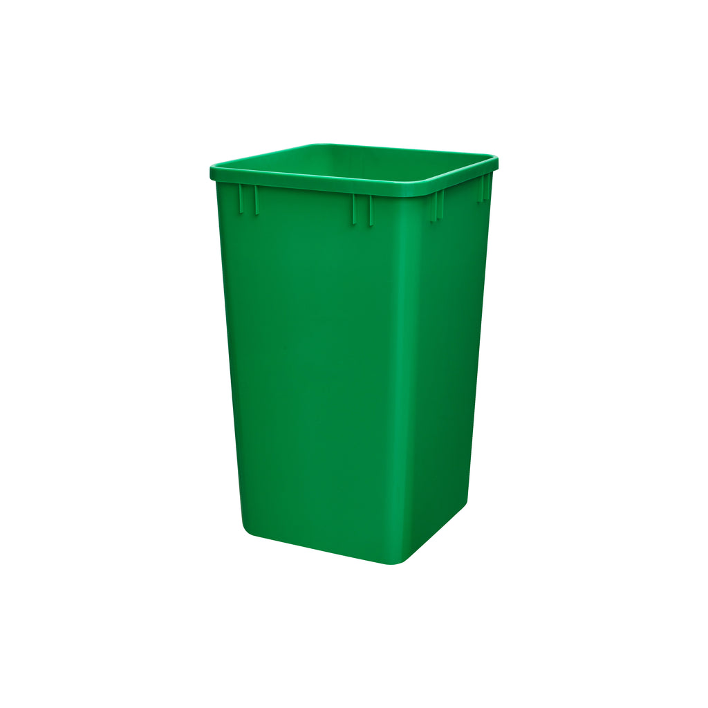 Do you just simply need a replacement or new trash bin? Rev-A-Shelf® polymer bins are not only made in the USA, but injection molded with the highest quality Polypropylene. Though designed to work with ALL of the Rev-A-Shelf® waste containers and trash pull-outs, they can be used for extra trash storage no matter where you need it. Available in variety of sizes and colors.. Included: (1) Green 27 qt. waste container