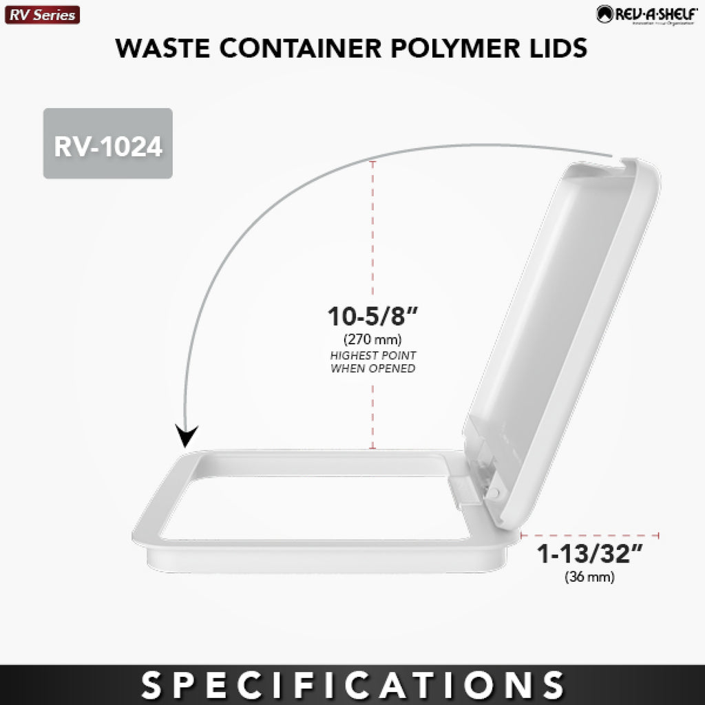 Conceal your trash with this injection molded bi-directional lid, specifically made for Rev-A-Shelf® waste containers. Available in a variety of colors and sizes for Rev-A-Shelf® waste containers. Actual bins and pullout units are sold separately and not included.. Included: (1) White 27 qt. waste container lid